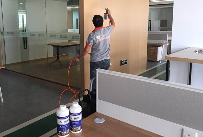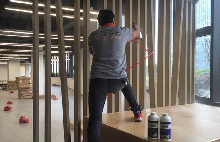 此次治理工程为位于杭州市经济技术开发区的杭州变啦网络科技有限公司全新装修办公室,此办公室装修完工时间较短,办公家具都是全新购买的,从大门进入异味明显,其公司员工对刚装修完的办公条件反应比较强烈,该公司负责了为此担忧不已,后经网上查找了几家空气治理单位相互比较之后选择了我们公司。我公司在接受杭州变啦网络科技有限公司相关负责人委托后,立马派专业工程师上门仔细查看现场,分析其污染源头。发现该单位装修比较复杂,在办公室中间用了大量的板材建造了房屋式的领导办公室,新购买办公家具味道也较大,墙面均为粉刷体,主要在与板材用量过多的问题,并为其制定了一整套科学详尽的室内空气整体净化治理的施工方案,得到杭州变啦网络科技有限公司负责人的认可后,而后我公司派出多名治理多年经验丰富的工程师和施工人员对办公环境进行全面的净化处理,针对立面板材、墙壁涂料、办公椅、地毯、办公家具、橱柜等污染源头,我公司施工人员针对不同的污染源利用纳米光触媒、甲醛清除、苯清除剂等分别进行治理,施工工艺是采用现今最科学的高压雾化的状态下进行均匀喷涂,让甲醛、苯系物、TVOC等全方位无死角得到清除。