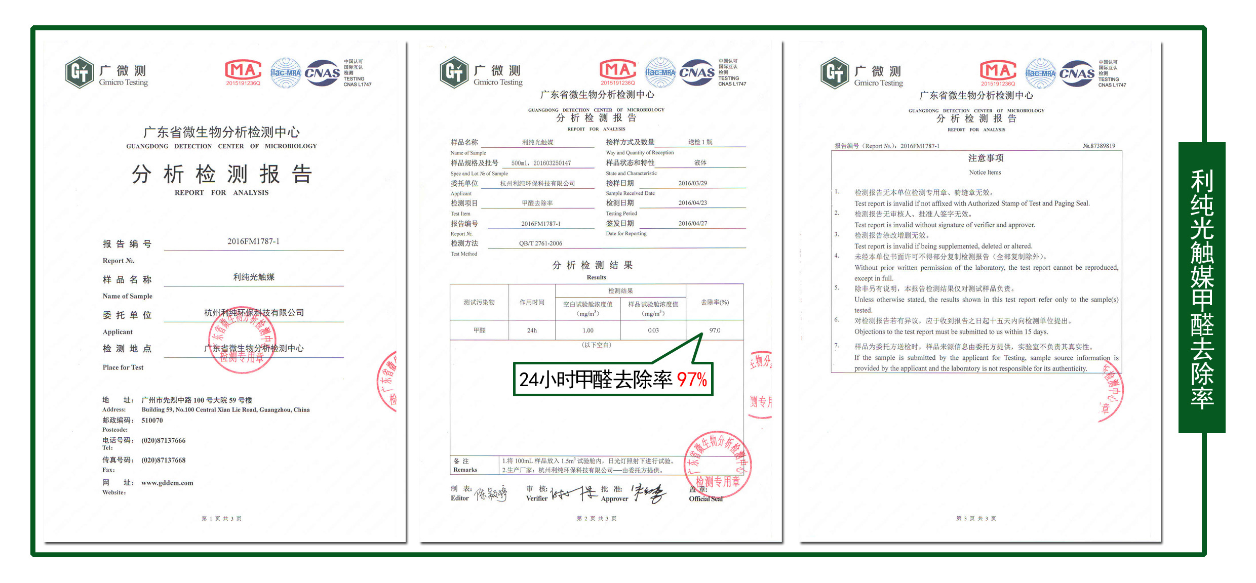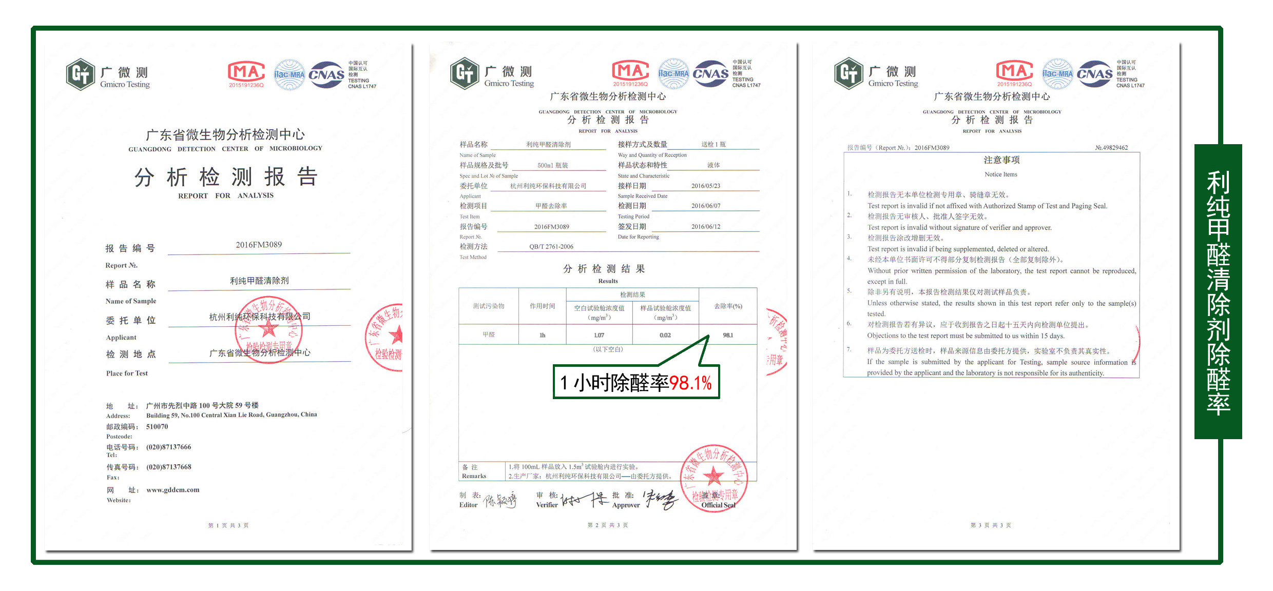 甲醛清除剂除醛率报告
