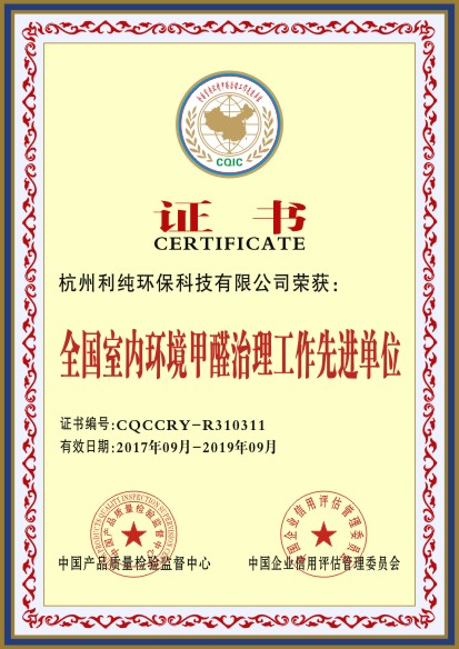 全国室内环境甲醛治理工作先进单位