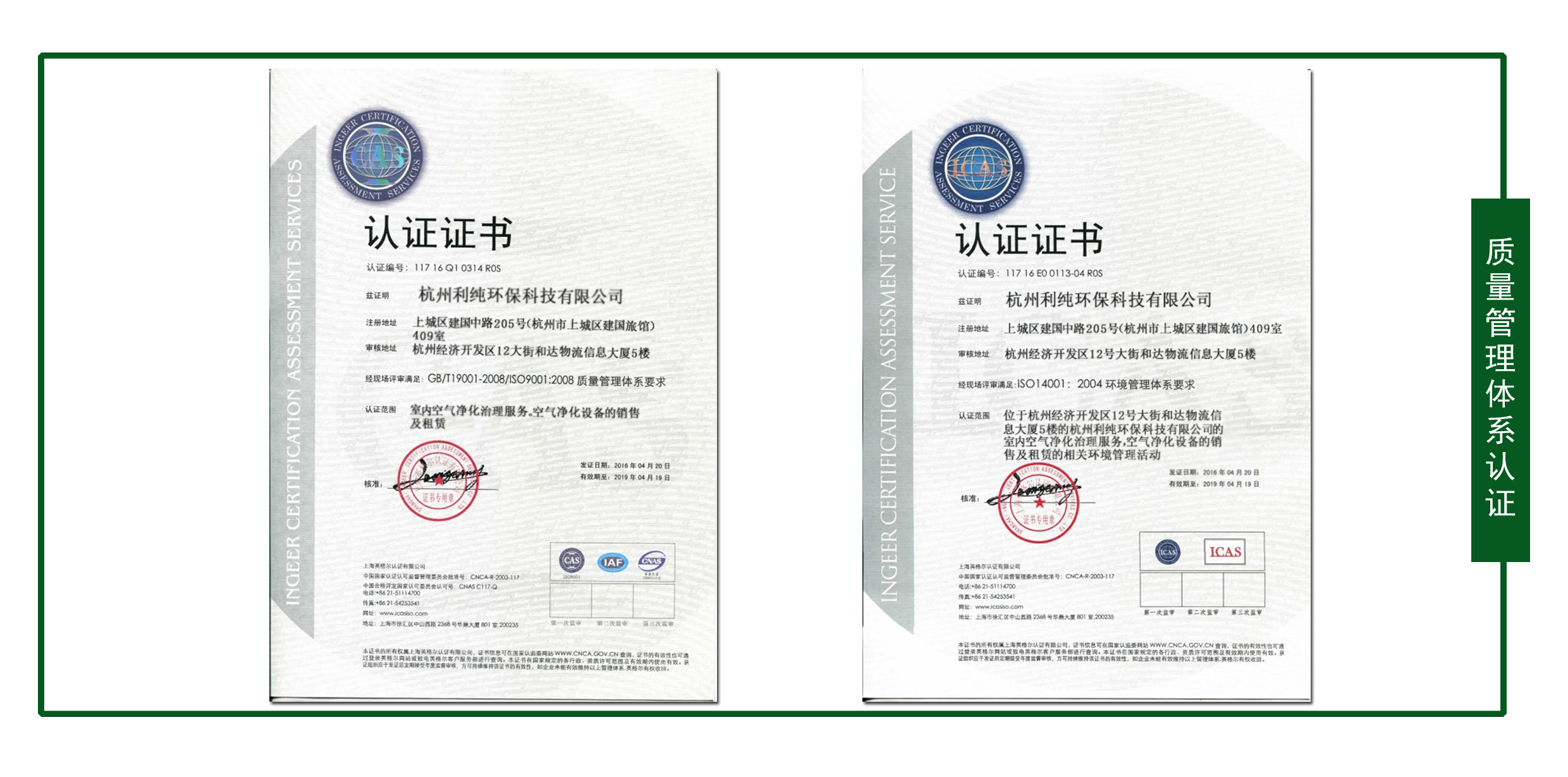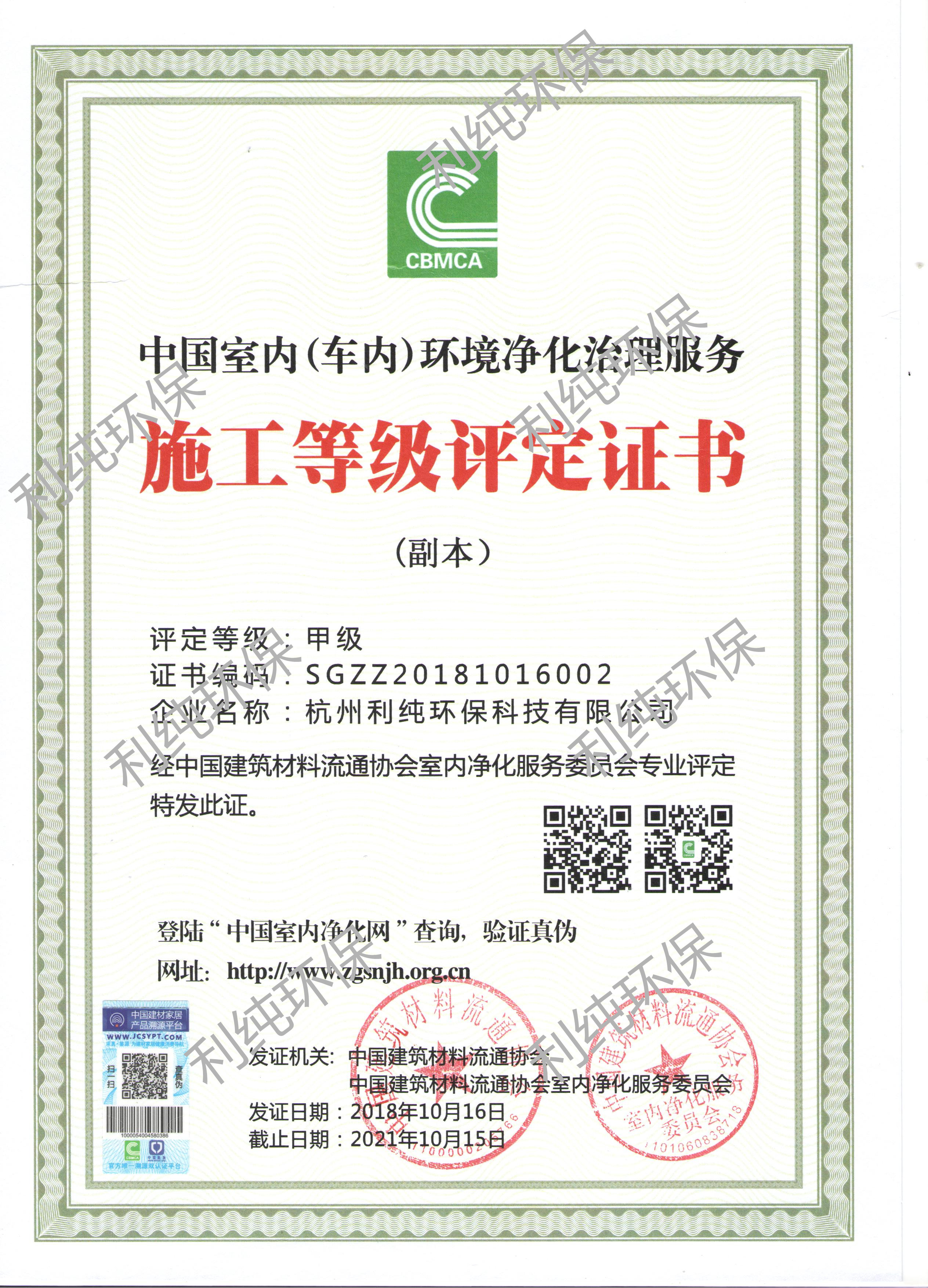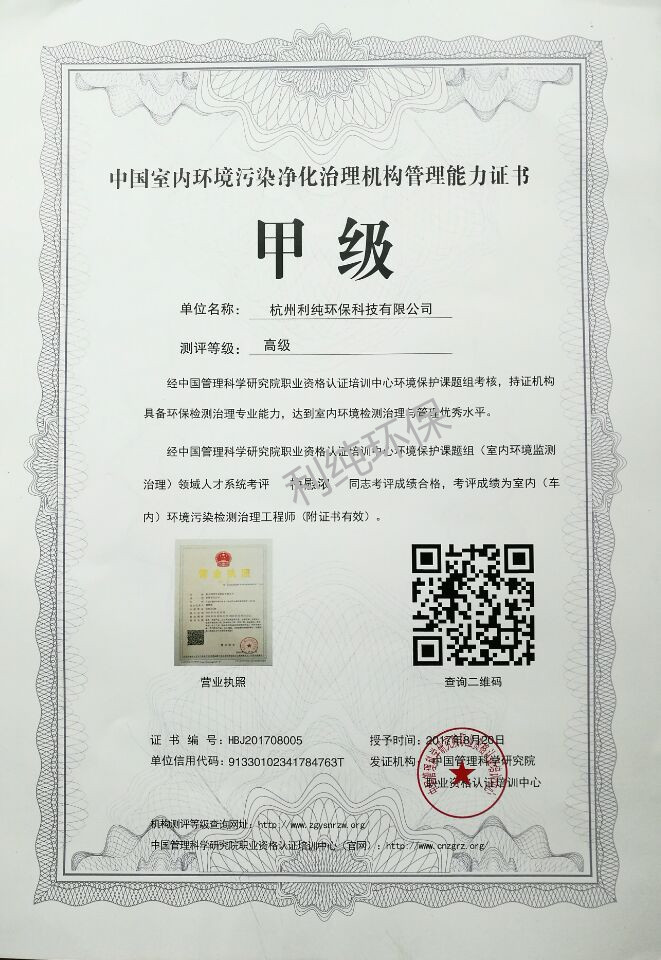 室内环境污染治理甲级证书