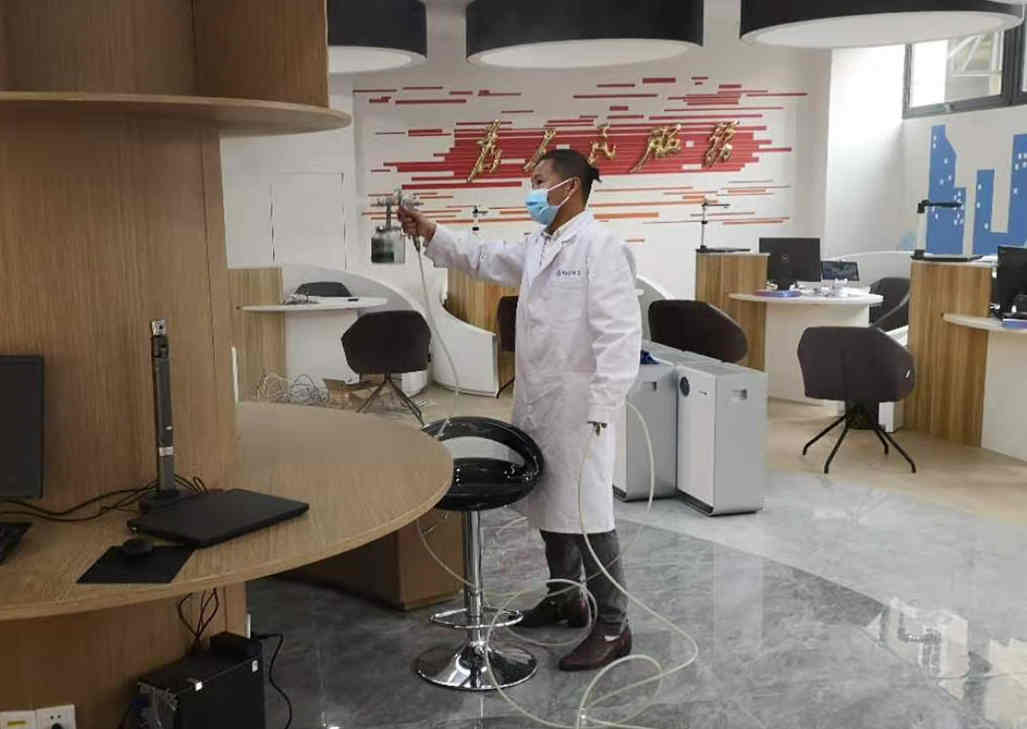 对于机械通风排污的辅助手段进行处理,对于个别房间较小且密闭性强,通风效果差的教室或区域,经过反复多次施工可有效降低污染源的同时,加强机械通风处理。软装类产品往往污染源潜藏在家具和产品内部,在选择施工药剂时要充分考虑各方面的因素,选择净化原理更加符合的产品进行治理,如座椅软装底部内部,一般选用生物酶类异味清除剂,而非光触媒类产品。