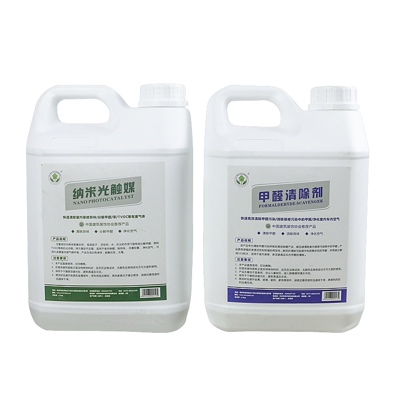 利纯公司使用的光触媒产品是有我公司自主研发的纳米级净化产品,其主要成份为纳米级催化剂(TiO2)、吸波活性剂、水,TiO2 作为一种光触媒,利纯 光触媒有效成分纳米粒径为 7 纳米,产品在常温和可见光的条件下就可以发生 氧化还原反应。表面形成强氧化性的氢氧自由基和超氧阴离子自由基,可把空气中游离的有害物(甲醛、苯和 TVOC 等有机化合物)及微生物分解成无害的二氧化碳和水,分解率达99%以上,持久稳定不反复,从而达到净化空气、杀菌、除臭等目的。