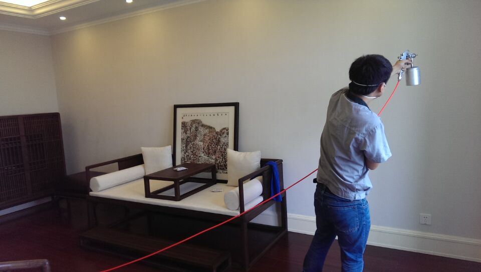 治理方案及施工:针对其新居污染特性,我公司技术及施工人员研究施工方案,采用非常精密的施工,针对其墙面、床垫、沙发、窗帘、布艺家具使用我公司研发的利纯光触媒进行甲醛清除,这些地方光照量较充足,便于光触媒对甲醛的分解,且光触媒性温和,不会对这些产品造成危害,对于刷漆的家具、书桌、衣柜、木门等采用甲醛清除剂进行处理,甲醛清除剂是我公司针对家具中甲醛特别研发的产品,对家具中甲醛、苯、等产品效果良好,甲醛对儿童、老人的危害最为严重,老人因为抵抗力差,而儿童却是因为身体防御系统不够健全,且呼吸频率比成人高,所以我们针对儿童房做了重点处理,对业主家的儿童房做重点处理,针对不同污染物,做分别处理。为业主清理甲醛,还业主一个安全,健康的生活环境是我们全体工作的责任,下面为施工现场照片: