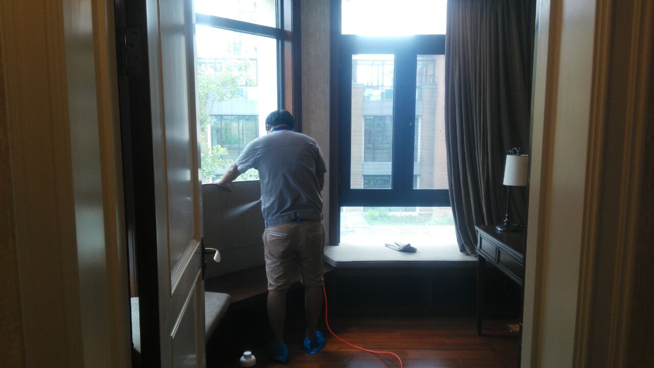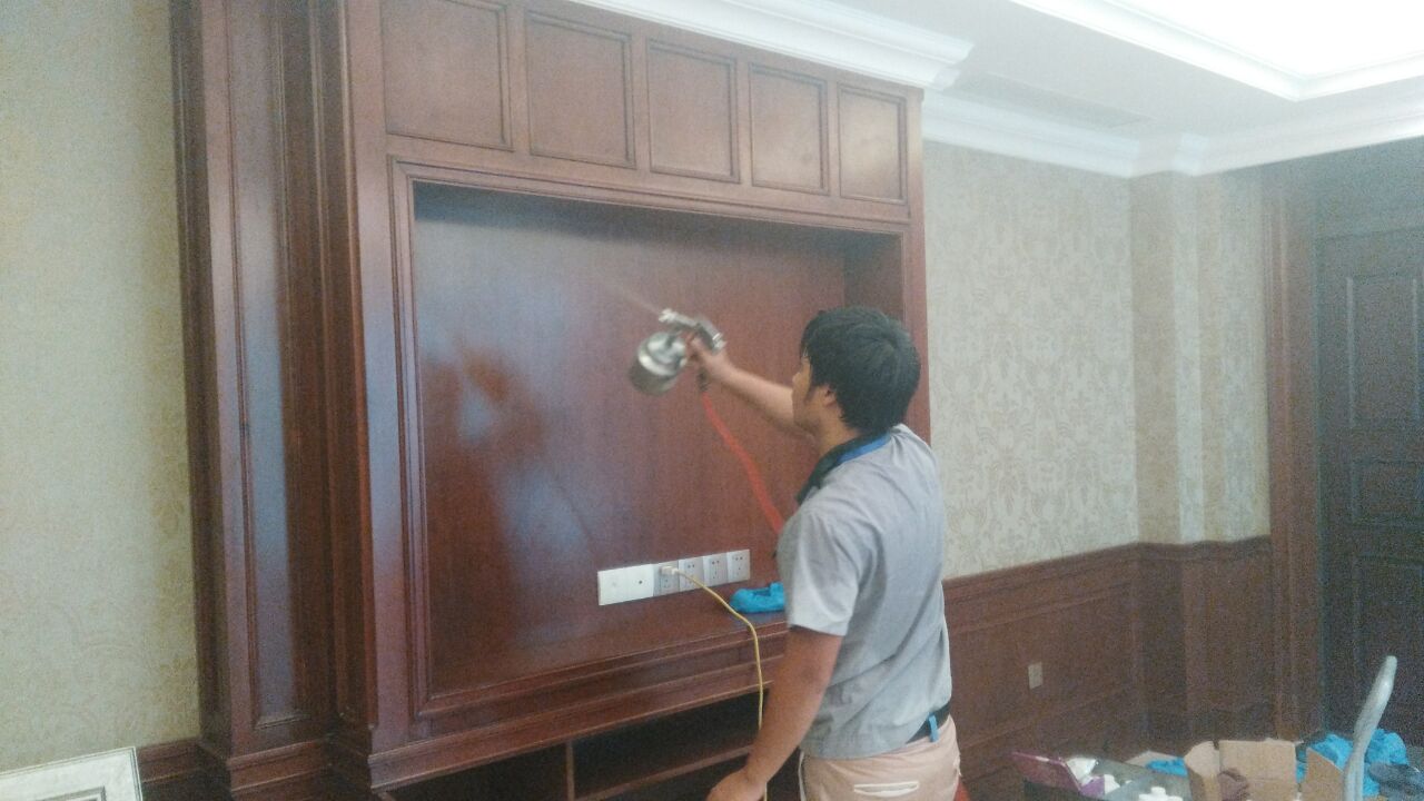 治理方案及施工:针对其新居污染特性,我公司多名技术、施工人员研究出一套最佳施工方案,且用全方位施工,针对其墙面、床垫、沙发、窗帘、布艺家具等在光照条件较好的部分使用利纯光触媒进行甲醛清除,这些地方光照量较充足,便于光触媒对甲醛的分解,且光触媒性温和,不会对这些产品造成危害,对于刷漆的家具、书桌、衣柜、木门等采用甲醛清除剂进行处理,甲醛清除剂是我公司针对家具中甲醛特别研发的产品,对家具中甲醛、苯、等产品效果良好,甲醛对儿童、老人的危害最为严重,老人因为抵抗力差,而儿童却是因为身体防御系统不够健全,且呼吸频率比成人高,所以我们针对儿童房做了重点处理,对业主家的儿童房做重点处理,针对不同污染物,做分别处理。为业主清理甲醛,还业主一个安全,健康的生活环境是我们全体工作的责任,下面为施工现场照片: