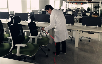 在了解到办公区域的污染源头后,我公司采取了计划施工,先是对粉刷的墙面以及整个办公区域的椅子喷涂利纯纳米光触媒,光触媒是最为安全、高效、安全的除甲醛产品,对于数量巨大的办工作,使用甲醛清除剂清除,而对于会议室的地毯,则采用高温熏蒸的施工方式,可以快速渗透,快速除甲醛,为业主清理甲醛,还顾客一个安全,健康的生活环境是我们全体工作人员的责任,下面为施工现场照片: